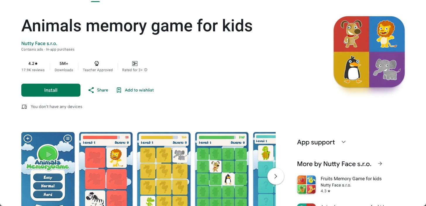 - Facts and information: The game offers reliable memory practice that aligns well with early developmental needs