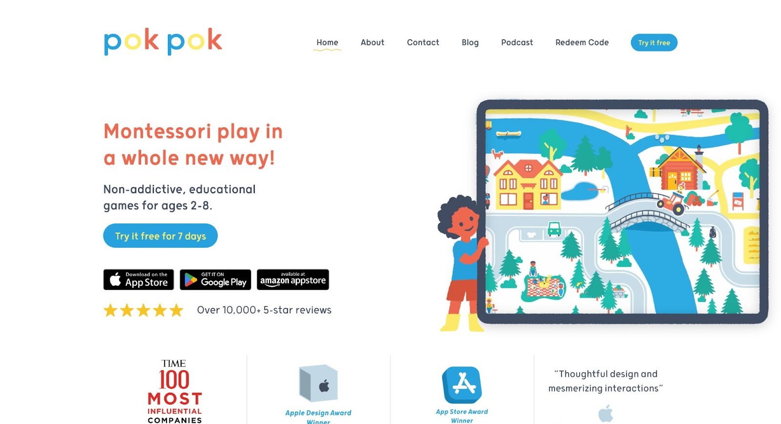 This unique blend of sound movement and visuals makes pattern recognition feel dynamic and joyful rather than repetitive. Families often see improved creativity and sequencing confidence emerge from regular use of the app in short playful sessions. Pok Pok remains a favorite for parents seeking screen time that nurtures imagination alongside early cognitive growth.